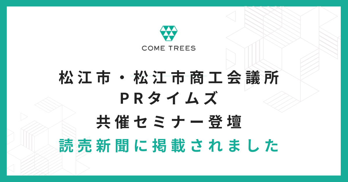 松江市と松江商工会議所、PR会社「PR TIMES」共催による広報・PRセミナーの開催について、2025年7月1日付の読売新聞に「広報戦略 成功例に学ぼう あす松江、セミナー参加を」と題して、掲載されました。 本セミナー […]